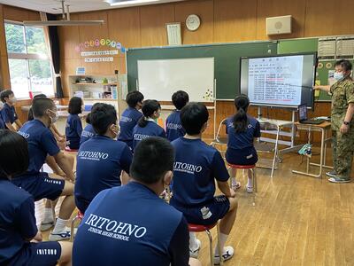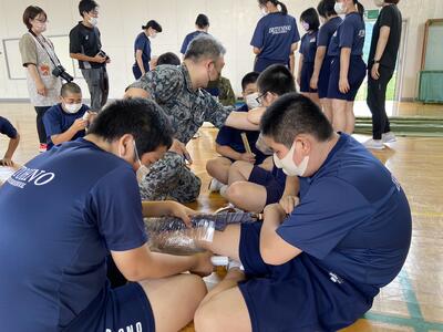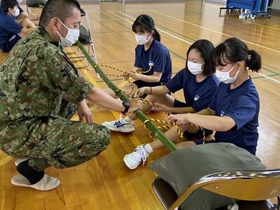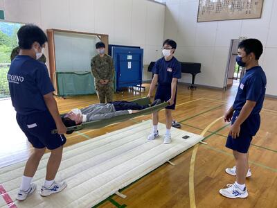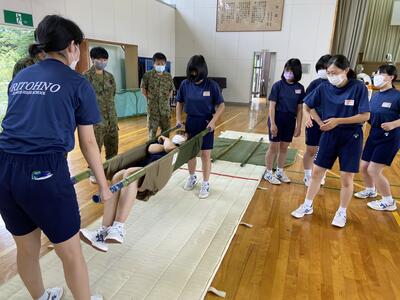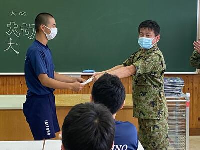 本日は、自衛隊の方々の全面的な協力の下、貴重な体験をさせていただくことができました。生徒の皆さんには、今日の体験を生かし、生涯に渡り災害から自らの命を守れるよう、また助ける側にもなれるよう、期待しています。