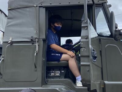 リュックやヘルメットを装着したり、大型トラックに乗せていただいたり、生徒も(先生も)大興奮でした。