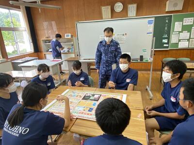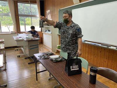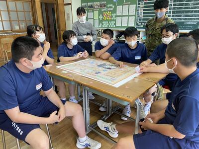 午前中最初は、自衛隊福島地方協力本部いわき地域事務所の相田所長から、防災講話をいただきました。所長ご自身の経歴や、自衛隊の役割や活動内容、災害派遣活動の実際など、貴重なお話を伺うことができました。