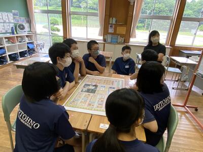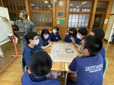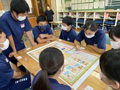 午後は、縦割り4グループによる避難所運営ゲーム【HUGゲーム】を行いました。