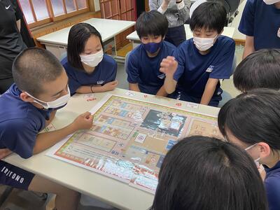 これは、ある市の避難所運営を任されたという想定の下で、次々にやってくる避難者の状況や要望を考慮しながら、迅速かつ適切に対応する術を学ぶシミュレーションゲームです。避難所の体育館や教室に見立てたボードに、避難者や設備の情報が書かれたカードを適切に配置したり、避難所で起きる様々な出来事にどう対応するのか、話し合って決めたりしていきます。ポイント制になっており、楽しく避難所運営について学ぶことができました。