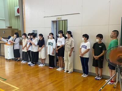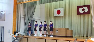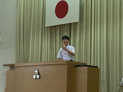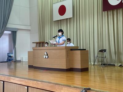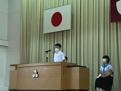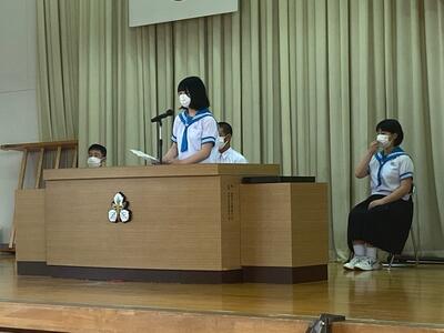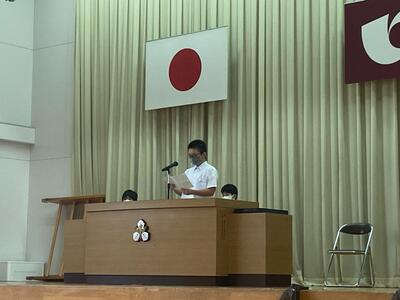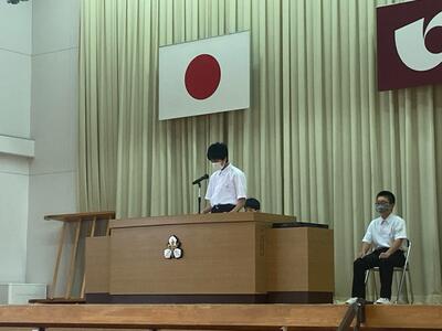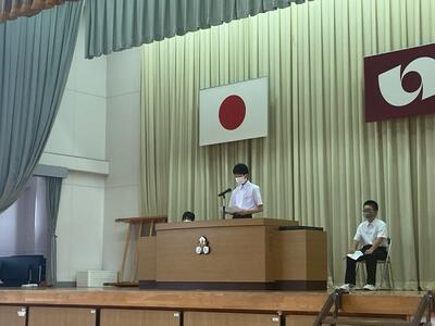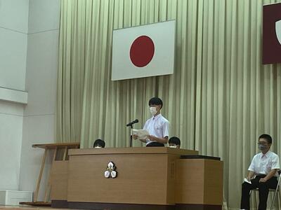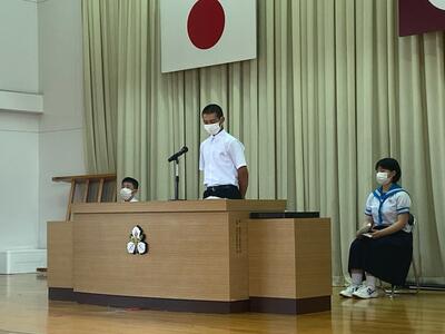 始業式では、各学年代表及び生徒会役員が「2学期の抱負」を述べました。どの生徒も、1学期の反省をもとに各学年の課題を明確にし、堂々と発表していました。