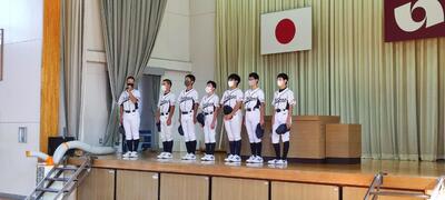 ユニフォームに身を包んだ選手たちは、一段とたくましく見えます。各部長による決意表明に、全校生で拍手を送りました。選手の皆さんには、最後まであきらめることなく、チーム一丸となって、全力で戦ってきてほしいと思います。