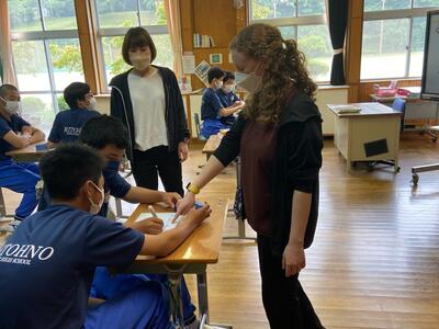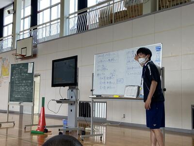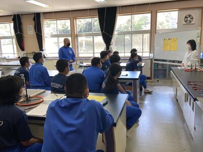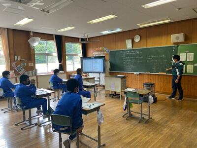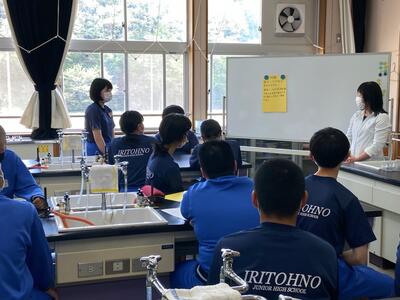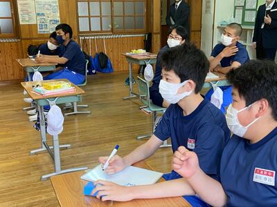 ジェスチャーを交えながら、難しい単語を駆使して説明する様子を、1年生もメモを取りながら真剣に聞いていました。
