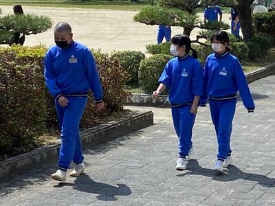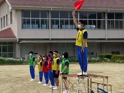 用具の準備や各係の動きも含め、全種目の流れを確認しました。生徒は一人何役も抱えているので大忙しですが、3年生の声掛けで生き生きと活動していました。