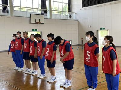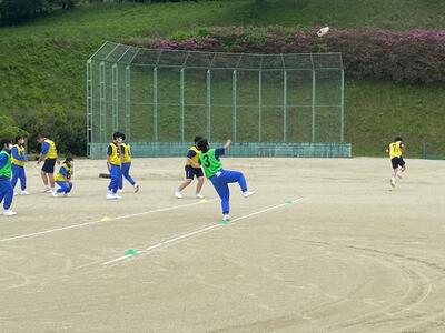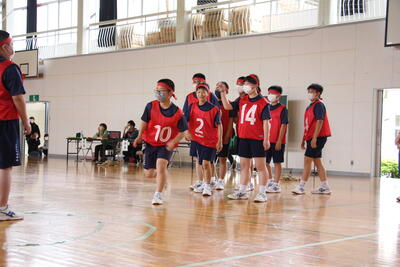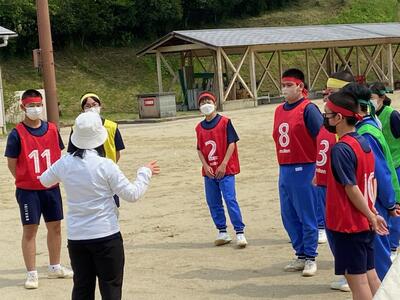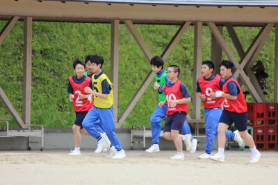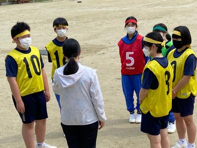 来月の体育フェスティバルに向けて、全体練習2回目の今日は、実施種目の1つである「スポーツ鬼ごっこ」の練習をしました。「スポーツ鬼ごっこ」は、自陣・敵陣が区切られており、自陣の宝を守りつつ、敵陣の宝を取りに行かなくてはなりません。色々なルール・制約があり、普通の鬼ごっこより、チーム内の声掛けや作戦が大切になります。おとりを使って相手チームの気を引いたり、チーム総出で守りに入ったりするなど、各チーム全力でプレーしていました。