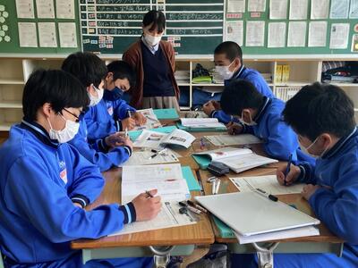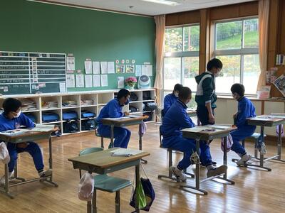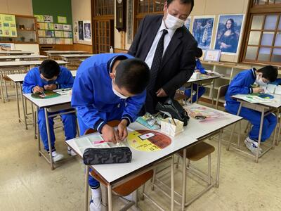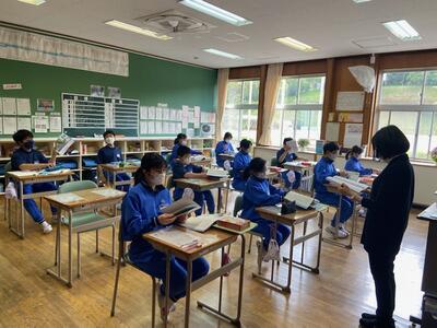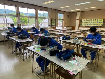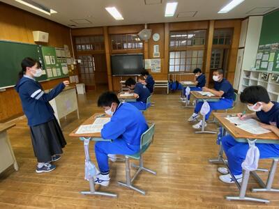 連休の合間の月曜日ですが、生徒たちはしっかり気持ちを切り替え、授業に集中して取り組んでいました。4時間目の授業の様子です。