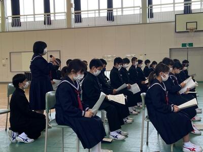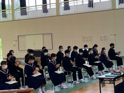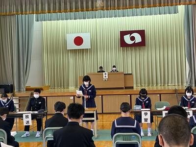 13日(金)の6校時は、専門委員長・学級役員の任命の後、前期生徒会総会を行いました。