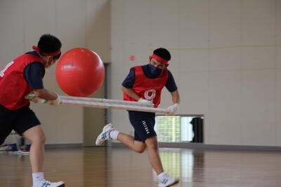 1 【ボール運び】 ボールを棒で挟んではいけないルールのため、意外と難しい!