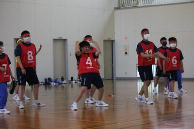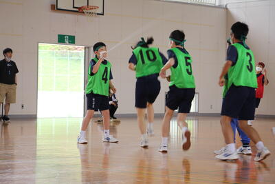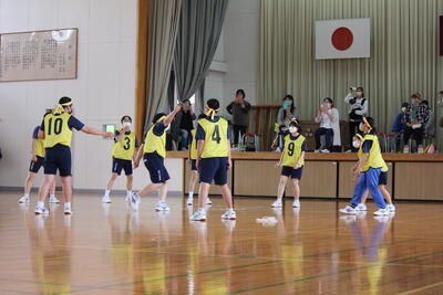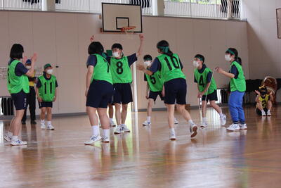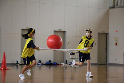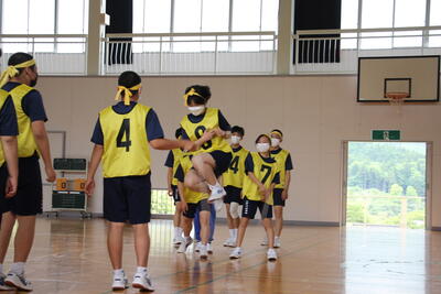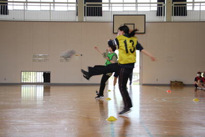6 【スポーツ鬼ごっこ】 コートの至る所で攻守が入り乱れ、目が離せません。一瞬の隙を突いて敵陣への侵入を果たす人、ディフェンスは任せろ、と自陣の宝の前に立ちはだかる人、縦横無尽に走り回り相手チームを撹乱する人…。手に汗握る接戦続きでした。