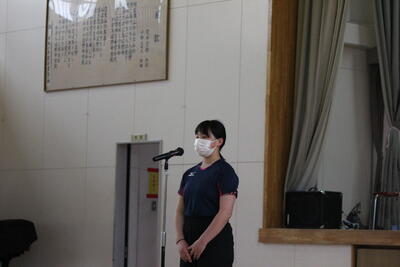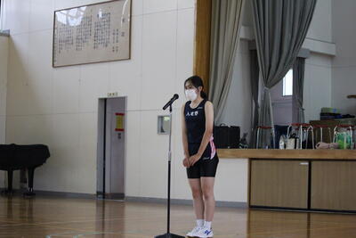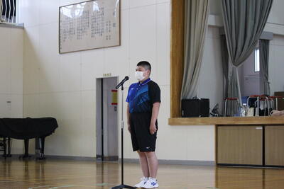 23日(月)、体育フェスティバルの午後の競技開始前に、市中体連大会の選手壮行会を行いました。