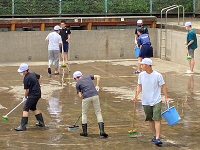 本校のプールは周囲を木々に囲まれているため、1週間前、水を抜いた直後のプールの底には枯葉や泥が溜まり、藻や苔もビッシリでした。