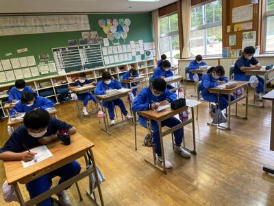 本日6校時、地震によって火災が発生したことを想定した避難訓練を行いました。コロナ禍ということで、消防署(分遣所)の方にお越しいただくことはできませんでしたが、緊急放送による避難命令を受けての校庭への避難~点呼まで、迅速かつ落ち着いた行動ができていました。いざという時にも本日の訓練を思い出し、身の安全・命を守ることを第一に考えた行動をとってほしいと思います。