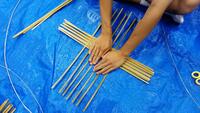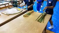 竹細工グループは、竹を組んでかごを作っていきます。