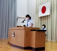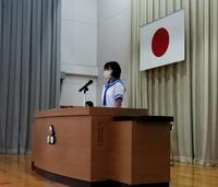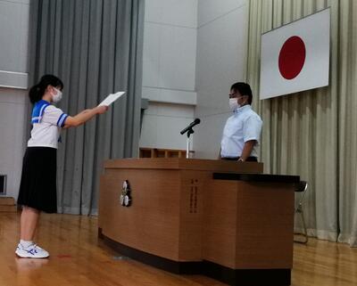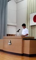各学年の代表生徒と生徒会の代表生徒がそれぞれの立場でこれまでを振り返り、2学期の抱負を述べました。