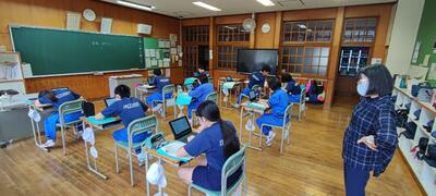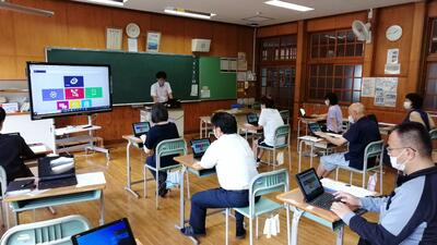 GIGAスクール構想(児童生徒に1人1端末を準備し、高速ネットワークで学習活動ができるようにする文部科学省が主体の全国的な取り組み)により配備された端末をどのように学習活動に生かしていくか研修しました。