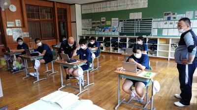 2年生、3年生は昨年度までに身に付けた操作スキルを生かしながら、さっそく学習教材に取り組んでいました。