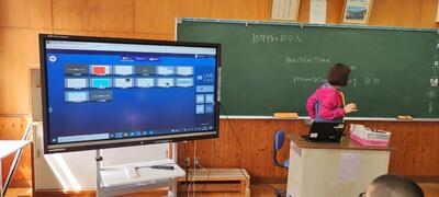 黒板となりのモニターにはみんなの画面が映し出されています。