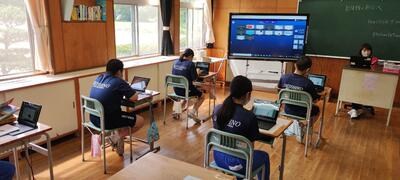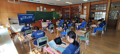 GIGA端末、電子黒板も駆使しての学習です。