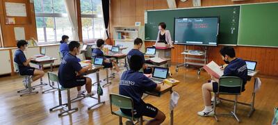 1学年の英語では生徒はGIGA端末(パソコン)を使って、
