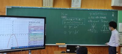 今日の数学は教科書と電子黒板を上手に使い分けての授業です。