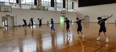 本日3校時は全校生で「くずのは祭」(入中文化祭)に向けて、ダンスの事前指導をしました。2・3年生による「よさこいソーラン」の模範演技を1年生がじっと見ています。