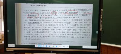 先生は電子黒板に書き込みながら授業を進めています。