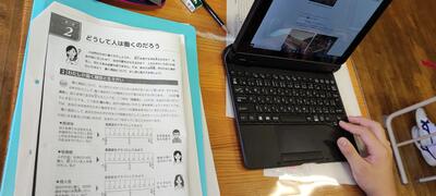 朝の短学活の前にパソコンを使ったり、ワークを使ったりして、