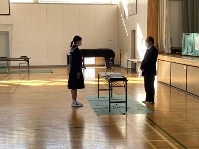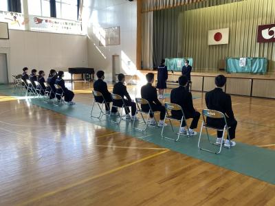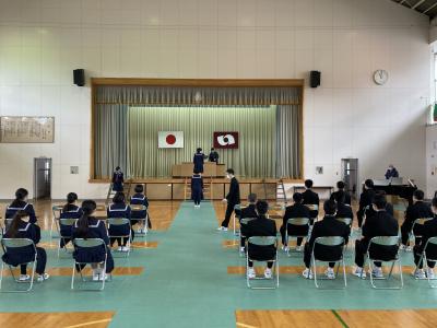 校長先生からは「これからは自分の学校、後輩を見守る一員になります。人間関係を大切にして、入中を温かく見守ってください。」とお話がありました。