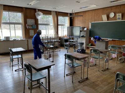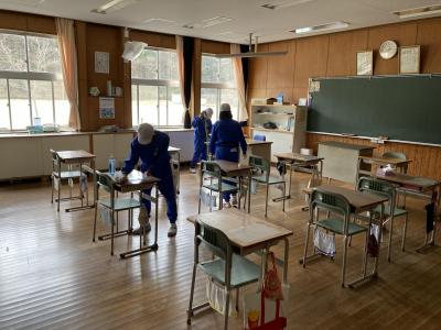 清潔検査、休み時間の換気、加湿器の手入れ、健康観察板の管理、トイレットペーパー・石けんの補充、感染症予防の呼びかけと、活動を確認していました。少ない人数でもたくさんの仕事があります。