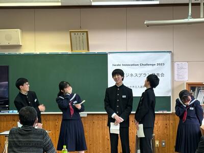 本日5・6校時はIwaki Innovation Challenge 2023の最終日。様々なプログラムとグループワークを通して考えた、防災に役立つビジネスプランを発表しました。