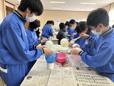 平山さんに丁寧に教えていただき、生徒たちはグループで協力しながら取り組んでいました。