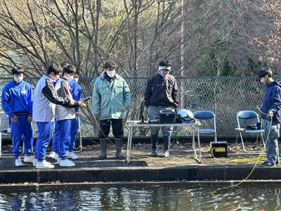 東日本建設コンサルタントの方が来校し、本校プールで水中ドローンの動作確認を行いました。水中を自由自在に移動するドローンの滑らかな動きや、搭載カメラのクリアな映像に、見学に来た3年生も興味津々。最後は、操作も体験させていただきました。