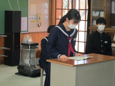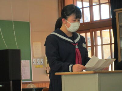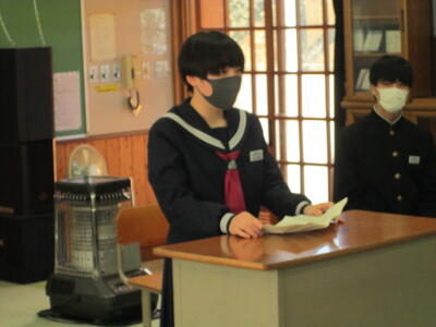 各代表生徒による「3学期の抱負」は、新しい年のスタート、そして入遠野中学校の締めくくりの学期にふさわしい立派な発表ばかりでした。