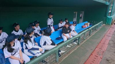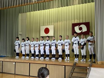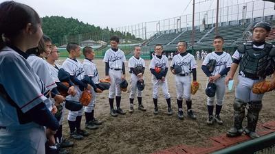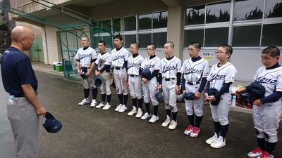 今日の試合は、3年生は中学校最後の試合、選手たちはこれまで応援してくださった方に感謝の気持ちをプレーで表したい、という想いでのぞみました。結果は1-9で敗戦。悔しい結果となりましたが、試合では随所に良いプレーが見られました。打撃では相手のピッチャーを揺さぶる工夫が感じられました。ピッチャーは三回までは1点に抑え、その後得点されたものの最後まで投げきりました。また、キャッチャーの送球で盗塁阻止するなど好プレーもありました。ベンチも選手も最後まで笑顔でプレーし、最後まであきらめない気持ちとベンチから盛り上げようというチームの一体感が見られました。