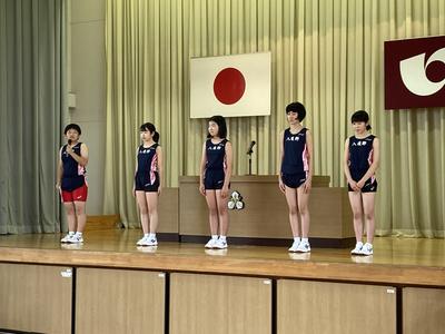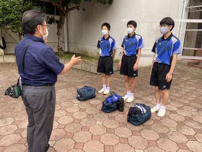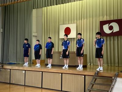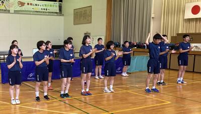 「中体連に出場される選手の皆さん、いよいよ目標としてきた中体連が近づいてきました。皆さんは毎日練習を重ね、部活動に取り組んできました。時には辛いことや苦しいこともあったと思います。しかし、それを仲間と共に乗り越えて今回の中体連に出場することはとても素晴らしいことだと思います。入中の代表として今までの練習の成果を精一杯出し切り、他校と戦ってきてください。また、3年生は中学校最後の大会になります。悔いの残らないよう3年間の集大成を試合の中で発揮できるよう願っています。頑張ってきてください。」