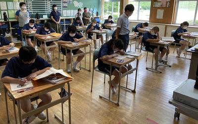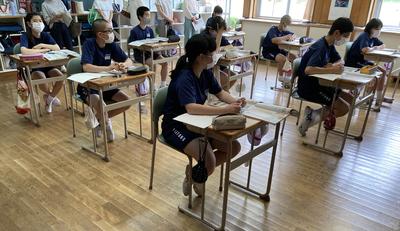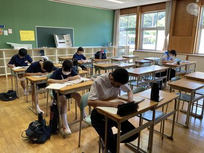 入遠野中学校では、夏季休業中に「オープンスクール」を行っています。学習は自主学習が中心ですが、疑問点があれば職員室の先生に聞くことができます。今年は3年生を中心に、学習に取り組みました。暑さが酷い時にはエアコンのあるPC室を開放することもあります。どの生徒も集中して取り組んでいました。