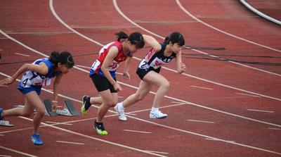 女子100m。校庭と競技上の感触の違いに戸惑いましたが、全力で走りました。