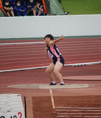 女子砲丸投げ。力強い良いフォームです。部長として皆を引っ張ってくれました。
