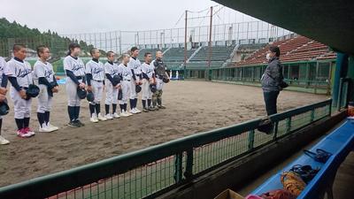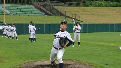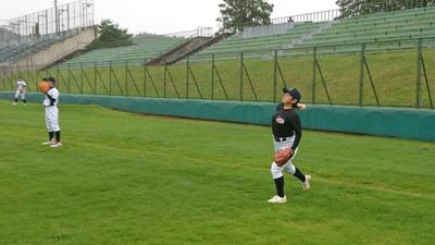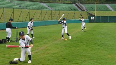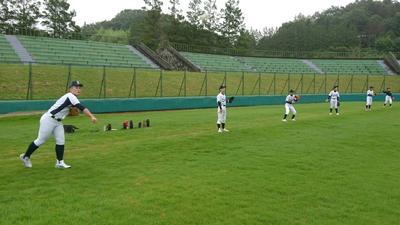 本日30日(木)、順延されていた野球大会が実施されます。入遠野中学校は早速球場入りしてアップを始めました。