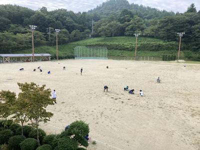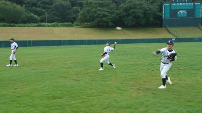 灼熱の太陽の下、野球部の声が響きます。キャッチボール、ノック、ベースランニングと、休憩をはさみながら、お盆明け毎日練習に取り組んでいます。