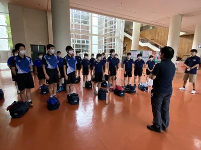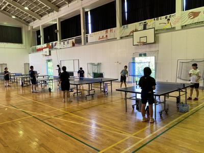 卓球部は陽が当たらない体育館半面を上手に使い、ストレッチからしっかり練習をします。暑いので、先生の打つボールを返すだけで汗だくです。