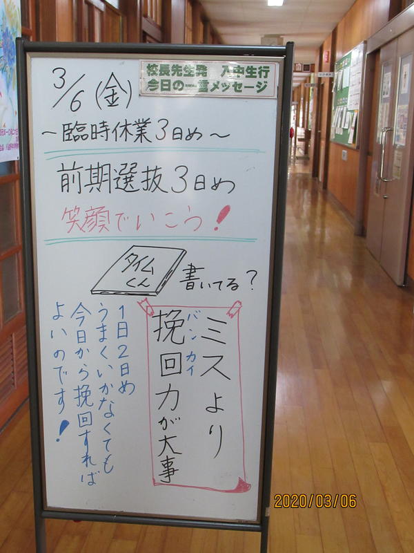 県立高校前期選抜3日目、受付完了しました。在平素でやれば大丈夫!大丈夫!