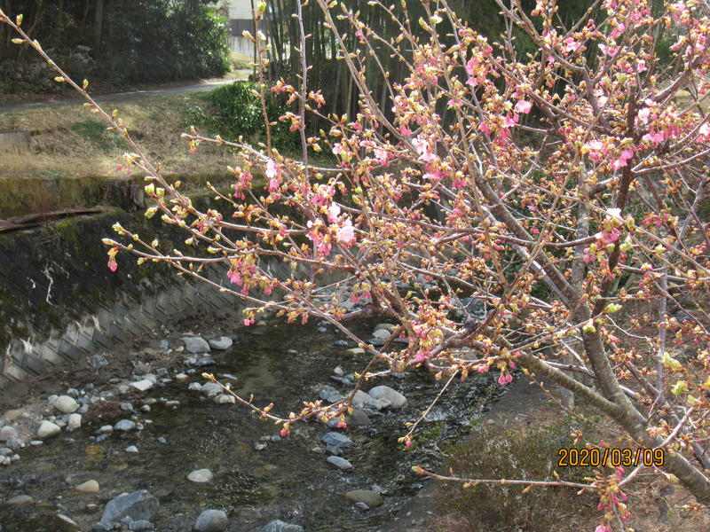 今日はとても暖かで気温は15度、河津桜が咲き始めています。写真は折松川土手のものです。