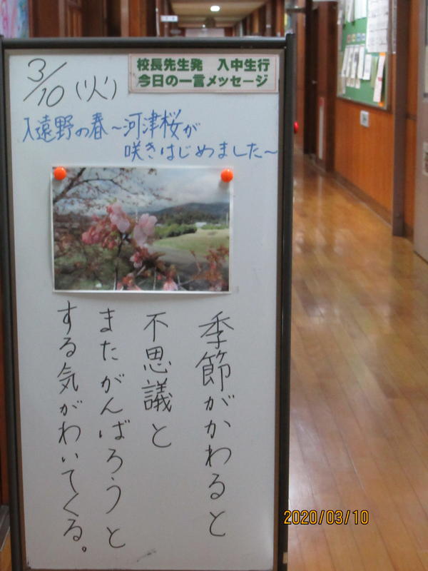 温かさに応えた入中さくらが開花しました。入学式の頃は満開でしょうか。