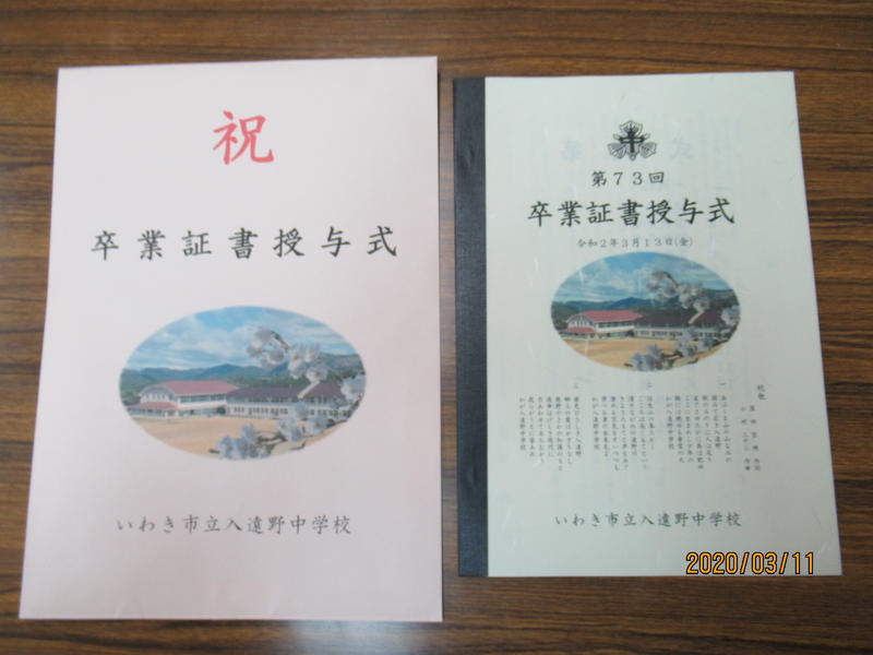 【おしらせ1】卒業式要項が出来上がりました!いよいよ明後日です。
