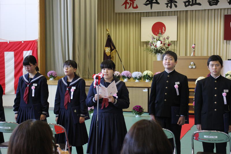 3年生14名の巣立ちの晴れ舞台が本日入中体育館で行われました。まずは卒業証書授与 卒業生14名