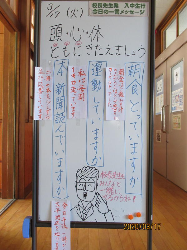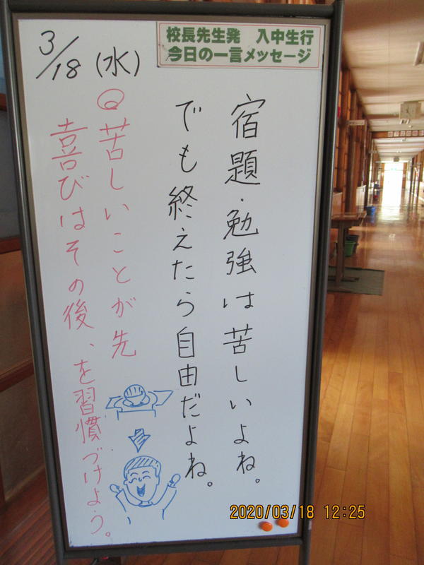 2020年3月27日 08時23分本日、先生方の離任の式を本校職員室にて行いました。