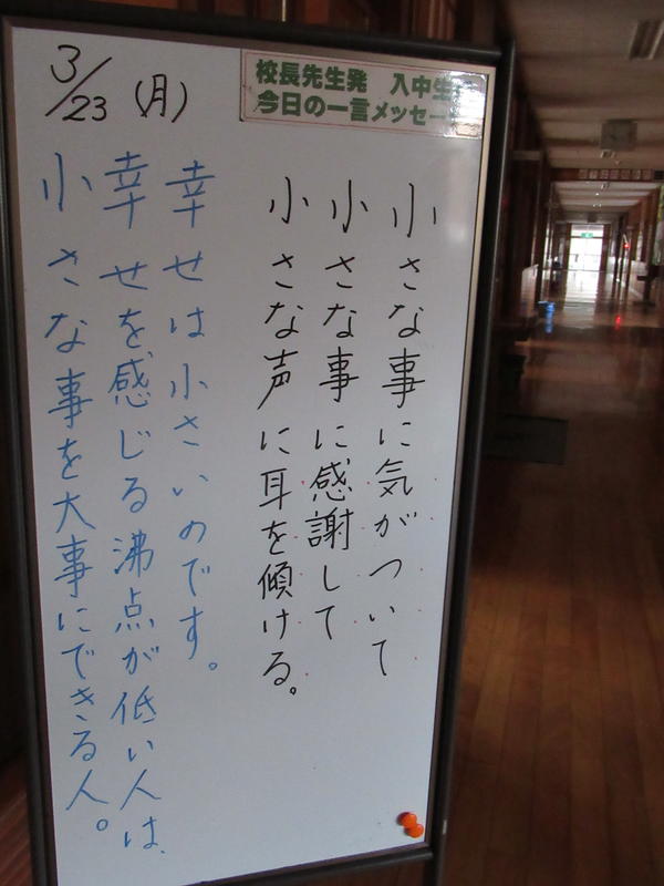 2年間本校にお勤めになったスクールカウンセラー(SC)の先生がご挨拶においでになりました。入中一人ひとりのお話を大事に聴いてくださり、自分で考えるヒントや相手との接し方など親身になってアドバイスいただきました。4月からは新しいお仕事に就かれます。またお会いしましょう。