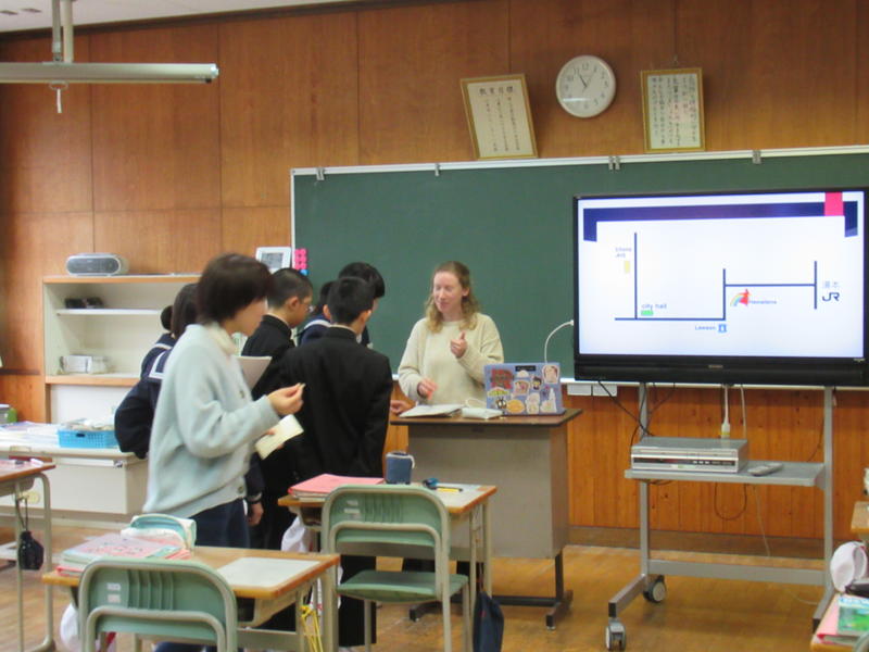 ALTが今年度2度目の来校、レッスン中です。昼休みに個別に会話を楽しんでいる生徒の姿も見かけます。